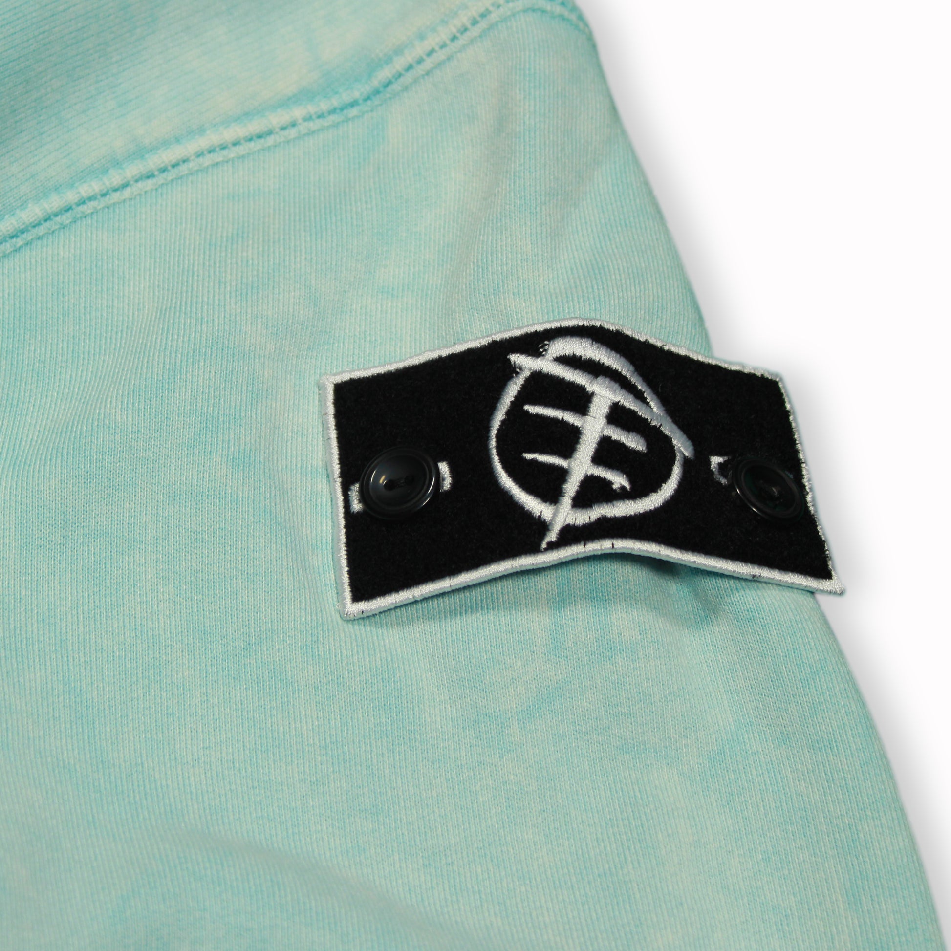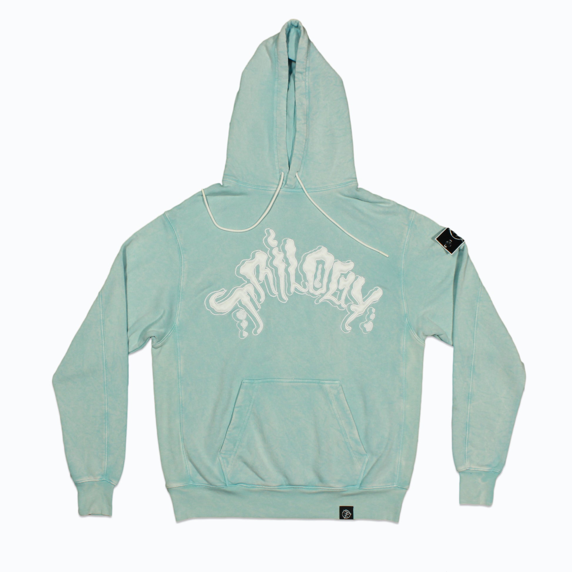 Cut and sew Brick Peninsula hoodies made up on bamboo cotton & cotton fleece. Hoodies have been stone washed to give the blue color. Trilogy patch is on left sleeve. Handmade in Los Angeles